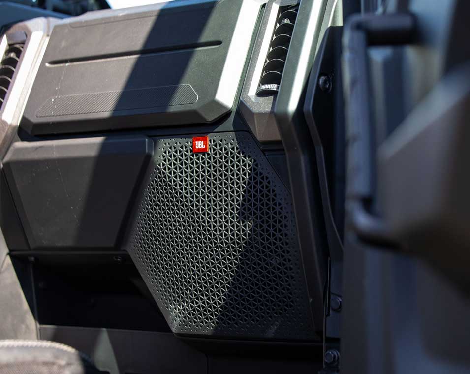 - JBL Trail Pro 4100. Subwoofer de 10" de 400", (2) Bocinas Stadium de 6" de 45", Amplificador de 200 Amp